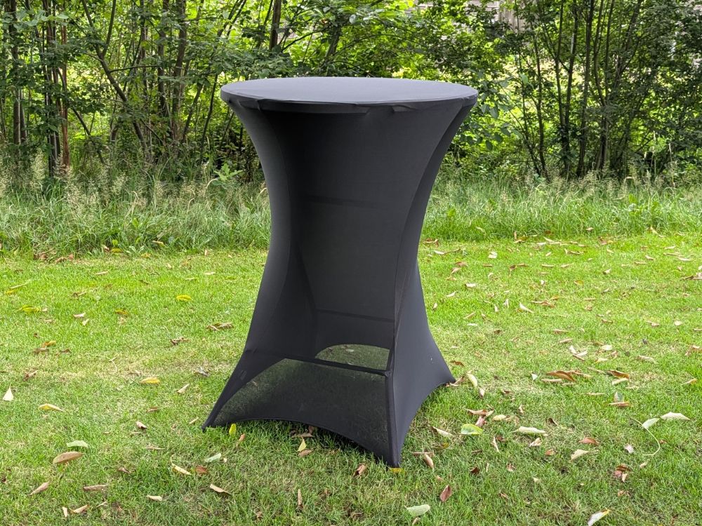 Standaard leveren we statafels zonder rok, maar je kunt eenvoudig statafelrokken bijhuren voor een nette en luxe uitstraling.
